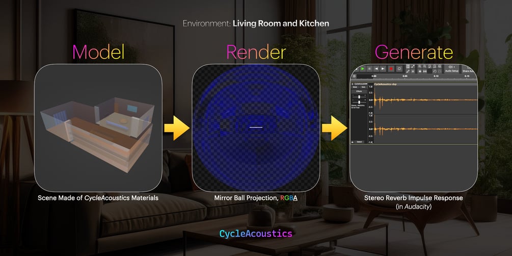 CycleAcoustics is a Blender add-on for generating reverb impulse responses from models of reverberant environments, such as rooms.